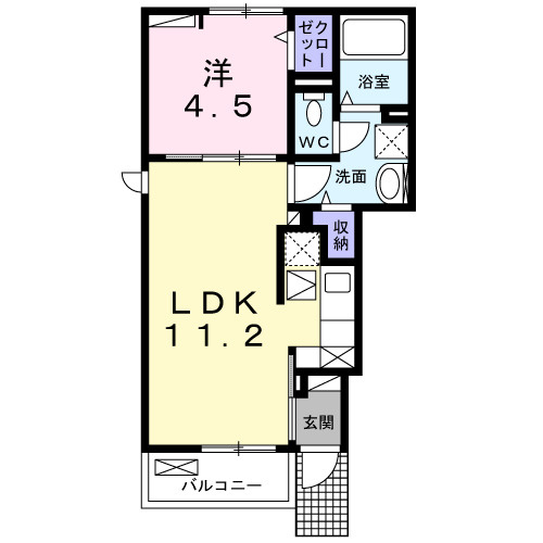 LDK 11.2帖/洋室 4.5帖 - 向き
